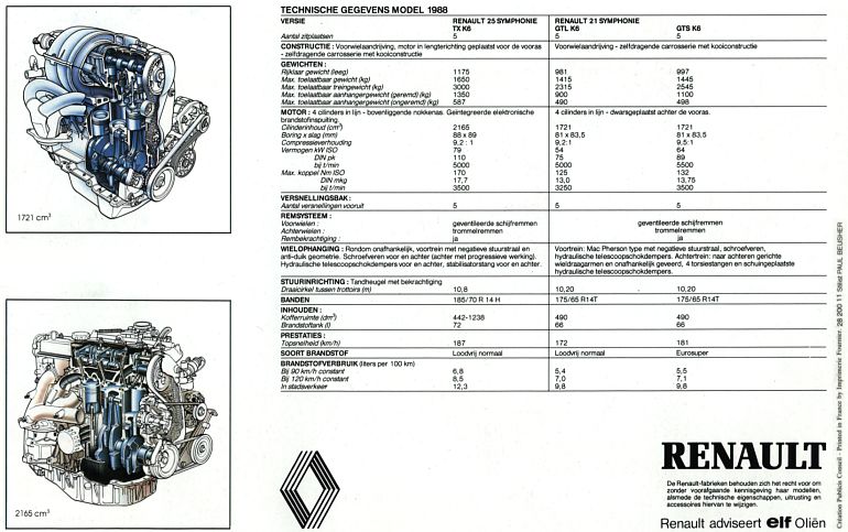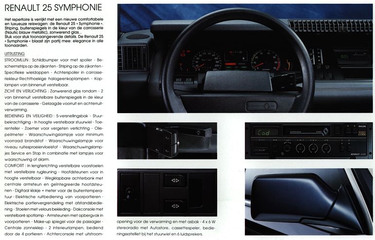 Holenderski prospekt wersji limitowanej "Symphonie" z 1988 roku. Prospekt dotyczy Renault 25 i 21.