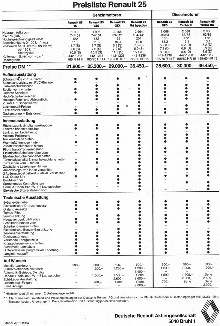 Renault 25 - Cennik ´84 [D]