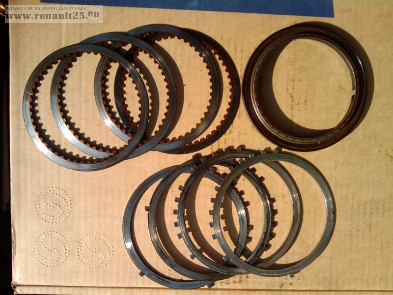 W trybie awaryjnym udało się dojechać do Grudziądza na wymianę skrzyni. W międzyczasie zawiozłem tam skrzynię przywiezioną z Francji, w której padnięty był wsteczny bieg. Okazało się, że padł w niej tłok i dzięki temu tarczki i przekładki biegu wstecznego przestały formalnie pełnić swoją funkcję. Oto co z nich zostało: