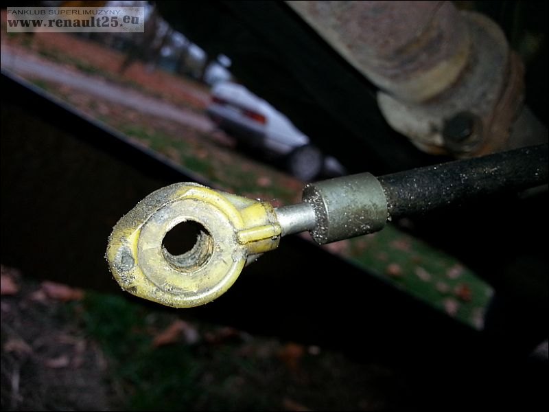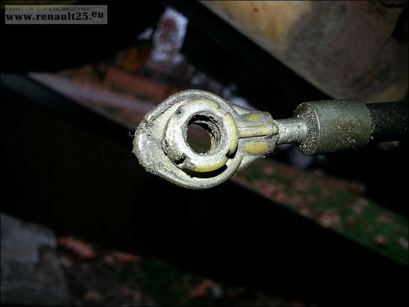 Dzisiaj znalazłem w końcu czas i podjechałem na zaprzyjaźniony najazd przy pobliskim szpitalu. Zdemontowałem cięgno, by sprawdzić co jest z nim nie tak. Zaskoczenie moje było ogromne, bo okazało się, że wszystko jest z nim OK. Zostało jedynie założone odwrotnie, tzn. dołem do góry, a górą do dołu. Tak zwany czeski błąd mechanika składającego wszystko do kupy po wymianie skrzyni.