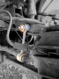 Łącznik od góry mocowany jest do śruby mocującej amortyzator w wachaczu. W 99% próba odkręcenia nakrętki jednym kluczem kończy się niepowodzeniem. Po prostu śruba obraca się wraz z nakrętką i konieczne jest zblokowanie drugim kluczem przeciwnej strony. Dlatego nie ma się co zabierać za wymianę, jeśli nie posiadammy drugiego klucza.