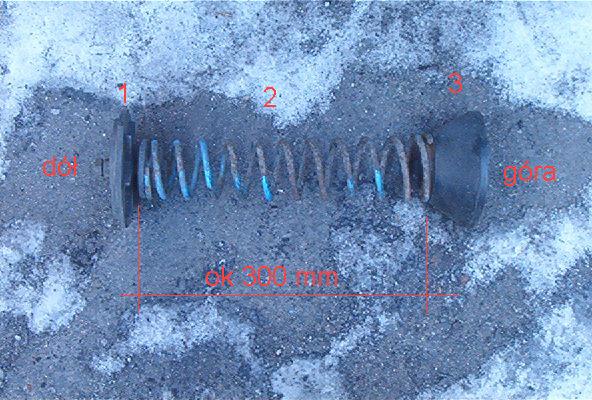 Wysyłam zdjęcia oryginalnego zestawu jaki stosuje się do podniesienia tyłu R25: miseczka górna (3) (ta co opiera się o budę ), sprężyna (2), miseczka dolna (1) regulowana (opierająca się o wachacz)