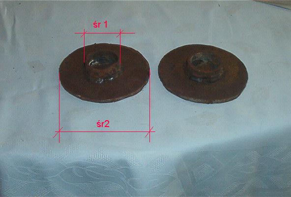 Wysyłam zdjęcie miseczek dolnych zrobionych przezemnie do sprężyn z poprzedniego postu. wymiary: śr1=ok 50mm, śr2=ok 120mm. Miseczka została tak wykrojona aby bez problemu weszła w gniazdo w wachaczu, a zarazem nie poroszała się.