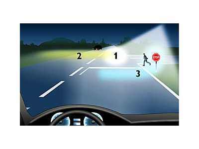 Halogenowy palnik o wysokiej wydajności z małym żarnikiem wytwarzającym dużą ilość lumenów połączony jest z precyzyjną geometrią w celu maksymalnego oświetlenia punktu znajdującego się 75 metrów przed pojazdem.