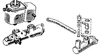 Od zbiorniczka płynu hamulcowego, biegnie cienki wężyk znikając za lewym kielichem. Zasłonięty przez serwo, doprowadza płyn hamulcowy do małej pompki odpowiedzialnej za komfort naciskania pedału sprzęgła
