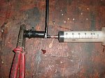 IV.napełnić strzykawkę płynem,zastosowałem hamulcowym R3,założyć igłę na strzykawkę uprzednio uciętą na dł 5 mm