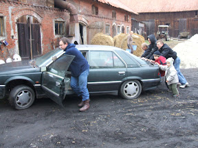 W Łukcie przed ośrodkiem zdrowia czekaliśmy na ekipę prowadzącą. Przy okazji okazało się, że kłopoty z rozruchem to po prostu brak styku na klemach akumulatora. Po wyczyszczeniu wszystko wróciło do normy. Podążając za Daewoo Nubirą kombi, która wkrótce nadjechała, dotarliśmy do Morąga i kawałek za tą miejscowością do gospodarstwa gdzie czekał na nas cel wyprawy - czyli TXI.
