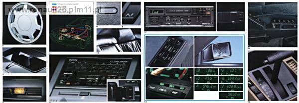 We wnętrzu zamontowano komputer pokładowy z syntezatorem mowy. W jednym w wybranych języków informował on kierowcę o wystąpieniu usterek, jak np. zużycie klocków hamulcowych czy przepalenie żarówek. Światową nowością, która dziś jest dość powszechnym rozwiązaniem było umieszczenie w kierownicy sterowania specjalnym zestawem audio 4x20. Na francuski rynek przewidziano pięć poziomów wyposażenia. Już podstawowy obejmował wspomaganie kierownicy oraz elektrycznie podnoszone szyby i regulowane lusterka a także centralny zamek z pilotem na podczerwień. W kolejnych poziomach wyposażenia oferowano wspomniany już system audio opracowany wspólnie z firmą Philips, system ABS, skórzaną tapicerkę, elementy ozdobne wykonane z naturalnego drewna oraz panel z wyświetlaczem danych.
