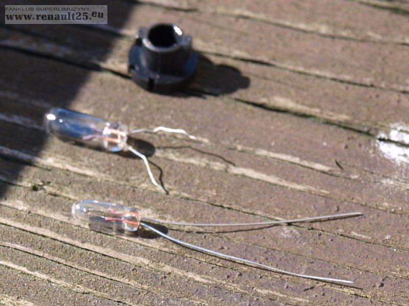 Do podświetlenia wyświetlacza radia należy użyć żarówek "radiowych" z wąsami. Muszą one być odpowiedniej mocy bo typowe zaróweczki do paneli radiowych są za słabe. Na zdjęciu własnie takie za słabe żaróweczki ktore jak się okazało świecą tragicznie.