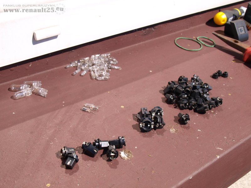 Teraz kolejna operacja a mianowicie wymontowanie żarówek z oprawek. W całej desce znajdują sie cztery rodzaje oprawek