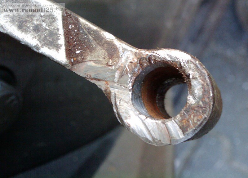 Przed przystąpieniem do wymiany musiałem zaopatrzyć się jeszcze w odpowiedni klucz oczkowy rozmiaru 16 w kształcie litery "C". Tylko taki klucz pozwala odkręcić drzwi bez zdejmowania zderzaka i błotnika :D. Do odkręcenia ogranicznika potrzebny jest nasadowy klucz 10.