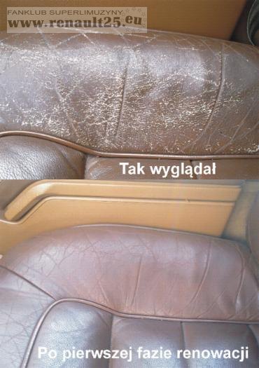 Po wymianie foteli welurowych na skórzane,trzeba było zabrać się za ich odnowienie.To pierwszy efekt prac.