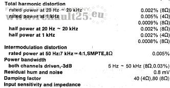 Zerknąłem do instrukcji serwisowych i tutaj ciekawostka. Zniekształcenia w 10 lat starszym wzmacniaczu są dużo dużo mniejsze , stosunek sygnał szum też jest większy. Co świadczy o jakości wykonania i opracowania, bo przy większej mocy zniekształcenia powinny rosnąć. Niżej dwa wycinki z instrukcji :