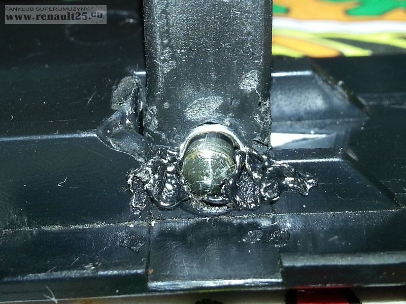Teraz należy odbudować brakujące fragmenty mocowania. Ja do tego użyłem starego narożnika, który nie nadawał się już do użytku. Istotne jest, aby używać do tego materiału identycznego, aby dobrze się zespolił z materiałem odbudowywanym. Użycie innego plastiku, może spowodować, że elementy się zespolą tylko powierzchownie, nie stanowiąc mocnego wiązania. Jeżeli nie mamy drugiego, zbędnego narożnika, możemy pobrać fragment materiału z tego samego narożnika, który naprawiamy :D. Zawsze znajdzie się taki fragment, który można odciąć bez uszczerbku na jego konstrukcji.