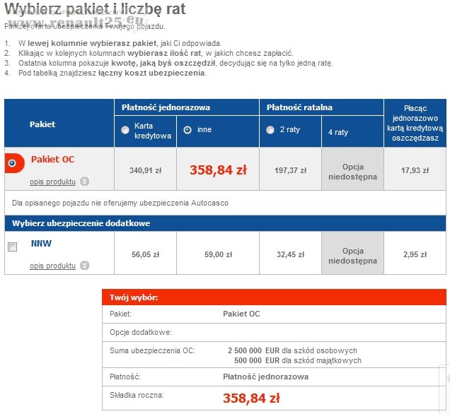 Dzisiaj wypowiedziałem umowę na espace'a, bo też był ubezpieczony w Inter Risk. Niestety w Link4 kalkulator wyliczył mi już 650 zł. Zacząłem więc poszukiwania innych kalkulatorów i w Liberty Direct wyszło mi 370 zł . Na wszelki wypadek policzyłem sobie też OC dla R25. Wynik na załączonym obrazku .