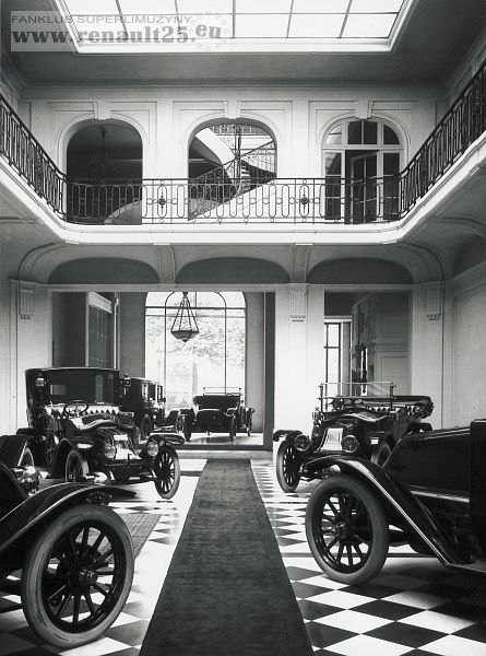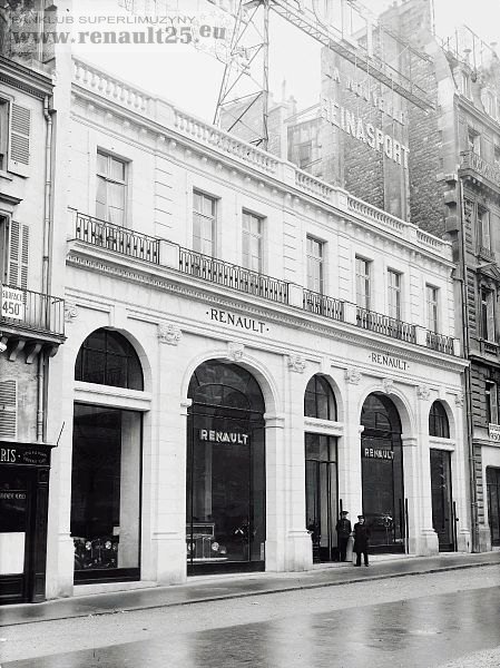 W 1910 roku wizjoner Louis Renault, rozumiejąc znaczenie miejsca i jego symbolikę, postanowił założyć przedstawicielstwo firmy na Polach Elizejskich, jednej z najpiękniejszych alei Paryża. Było to miejsce strategiczne. W 1898 roku zorganizowano pierwszą wystawę automobili na esplanadzie w Ogrodach Tuileries, której celem była popularyzacja nowego środka transportu. Wydarzenie to dało początek Salonowi Samochodowemu. W 1901 roku zyskało wspaniałą oprawę w postaci Grand Palais. Renault wybrało wyżej położony odcinek długiej arterii, która stanie się najpiękniejszą aleją świata, niedaleko ronda, a więc tuż obok Grand Palais.