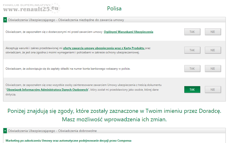 Dodatkowo otrzymujemy link z dostępem do oferty.Musimy zaznaczyć zgody i zweryfikować się peselem, podanym wcześniej agentowi przez telefon.