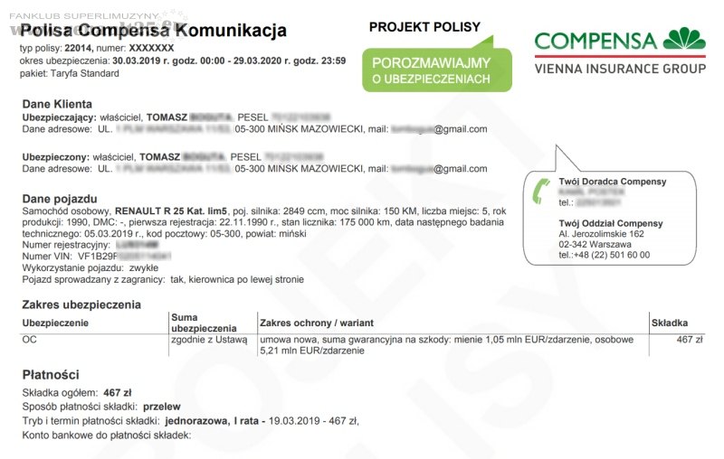 Teraz różnice jakie wyłapałem między ubezpieczeniem w PZU a Compensą.