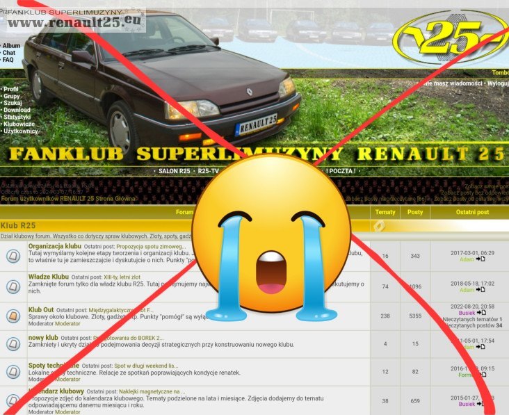 Witam wszystkich. Niestety ale prawdopodobnie czas tego forum w postaci jakiej je znacie dobiegł definitywnie końca. Bark wsparcia dla nowych wersji PHP skutecznie eliminuje z rynku nasze miejsce wieloletnich spotkań. Po otrzymaniu z dotychczasowego hostingu faktury za przedłużenie na kwotę 2000 zł postanowiłem przenieść wszystkie swoje domeny i strony na inny hosting. Niestety, nikt już nie wspiera PHP w wersji kompatybilnej z forum a za dotychczasową kompatybilność musiałem płacić rocznie około 300 zł dodatkowo, czyli sama domena + obsługa starczej wersji PHP to było jakieś 500 zł rocznie. Do tego hosting, czyli miejsce na stronę, procentowo do zawartości moich rzeczy zawodowych to pewnie kolejne 200zł, czyli 700 zł rocznie kosztuje mnie utrzymanie forum.